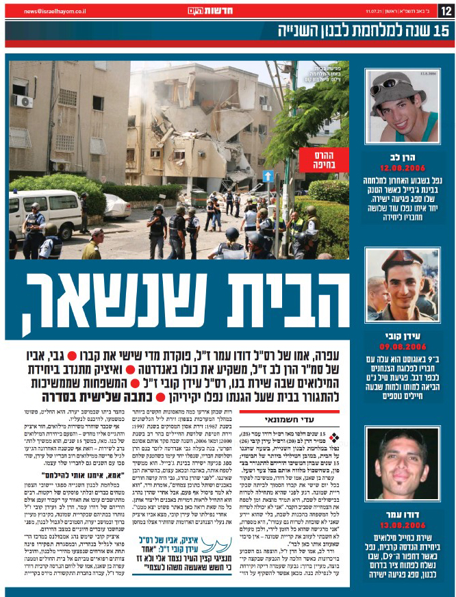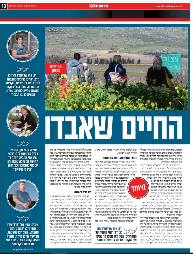 כתבה מישראל היום: הבית שנשאר - החיים שאבדו